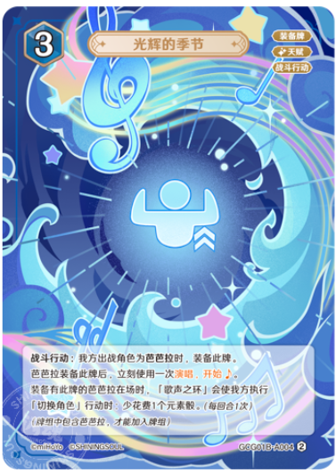 After Barbara equips this card, immediately use Let the Show Begin♪ once. |