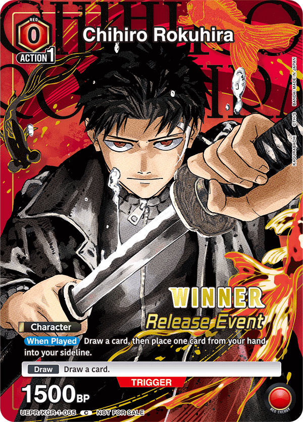 Open 5 sealed Booster Packs of Kagurabachi, and use the contents to form your 60 card(-1 for each Action Point opened) deck using every card in the packs. All cards generate energy of all colors for this event, rounds are extended an extra 5 minutes. All decks must be sleeved, players must bring their own 3 Action Points for use during the event. (Proxy action points are allowed)