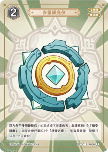 When either side uses a Skill: If Elemental DMG was dealt, this card gains 1 Qualitative Progress. If this card has gained 3 Qualitative Progress, discard this card, then roll and create 3 Elemental Dice. |