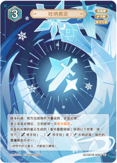 After Chongyun equips this card, immediately use Chonghua's Layered Frost once. |